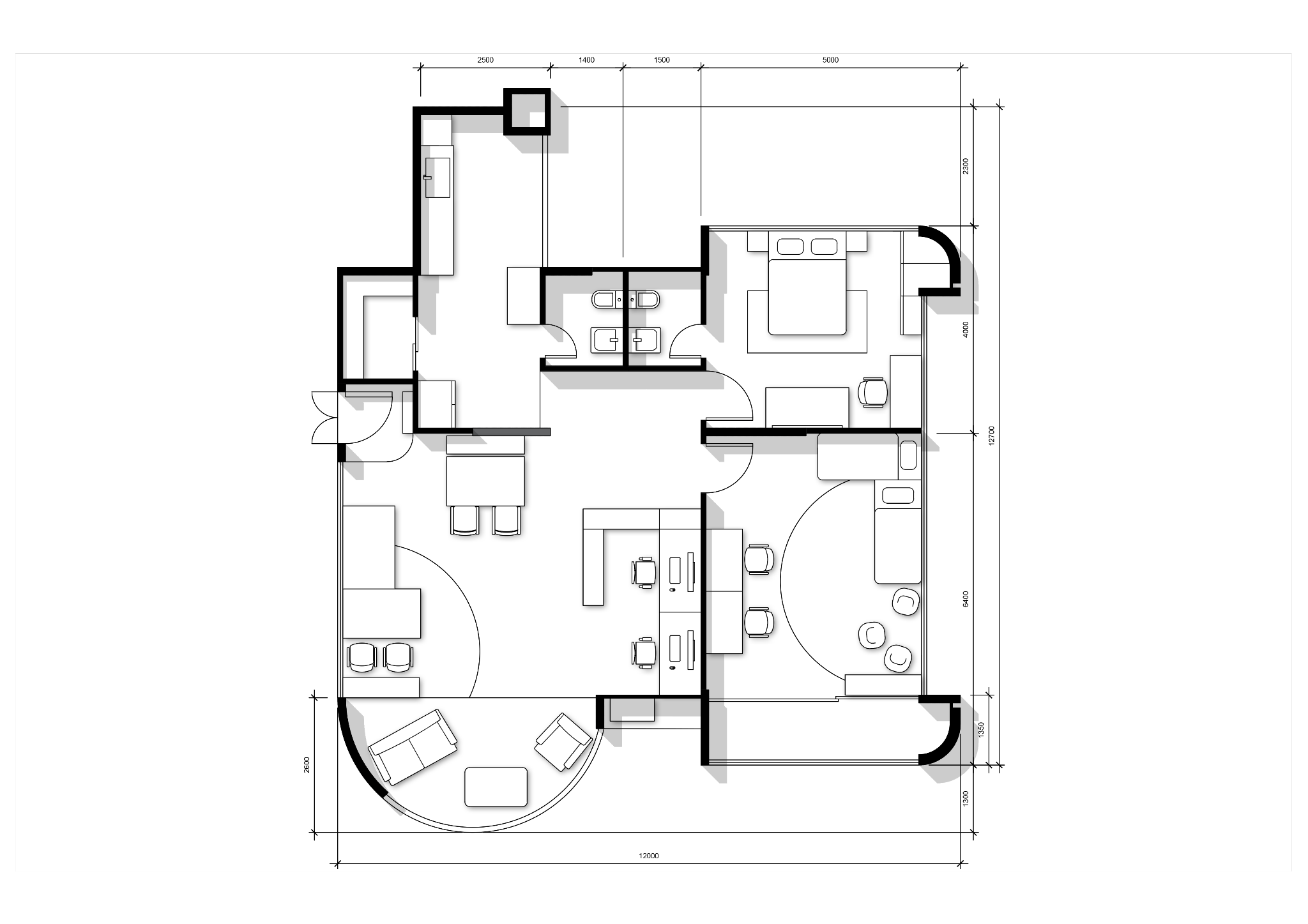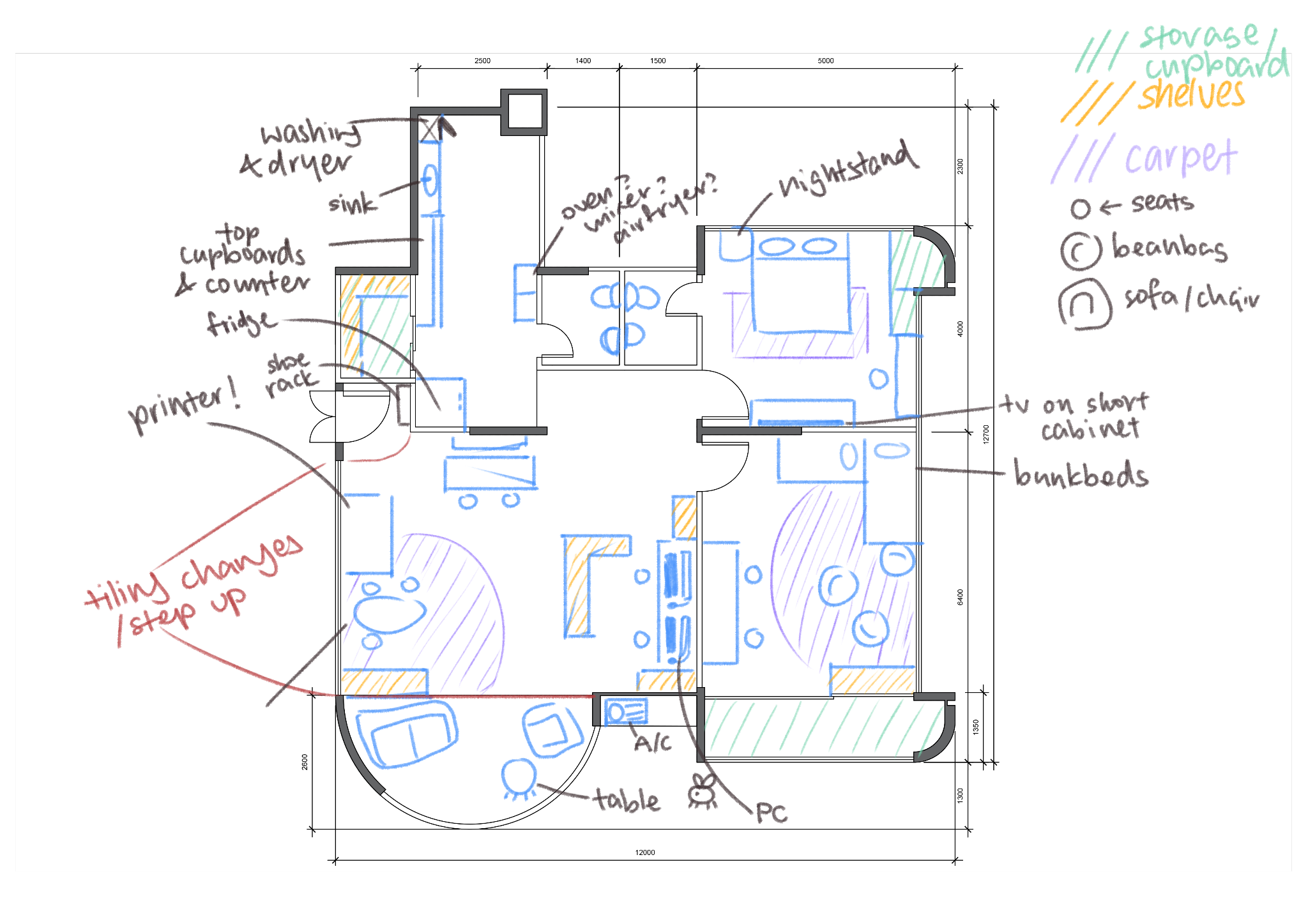 Based on the project brief and mock client specifications, we developed a draft plan for furnishings and space layout allocation.